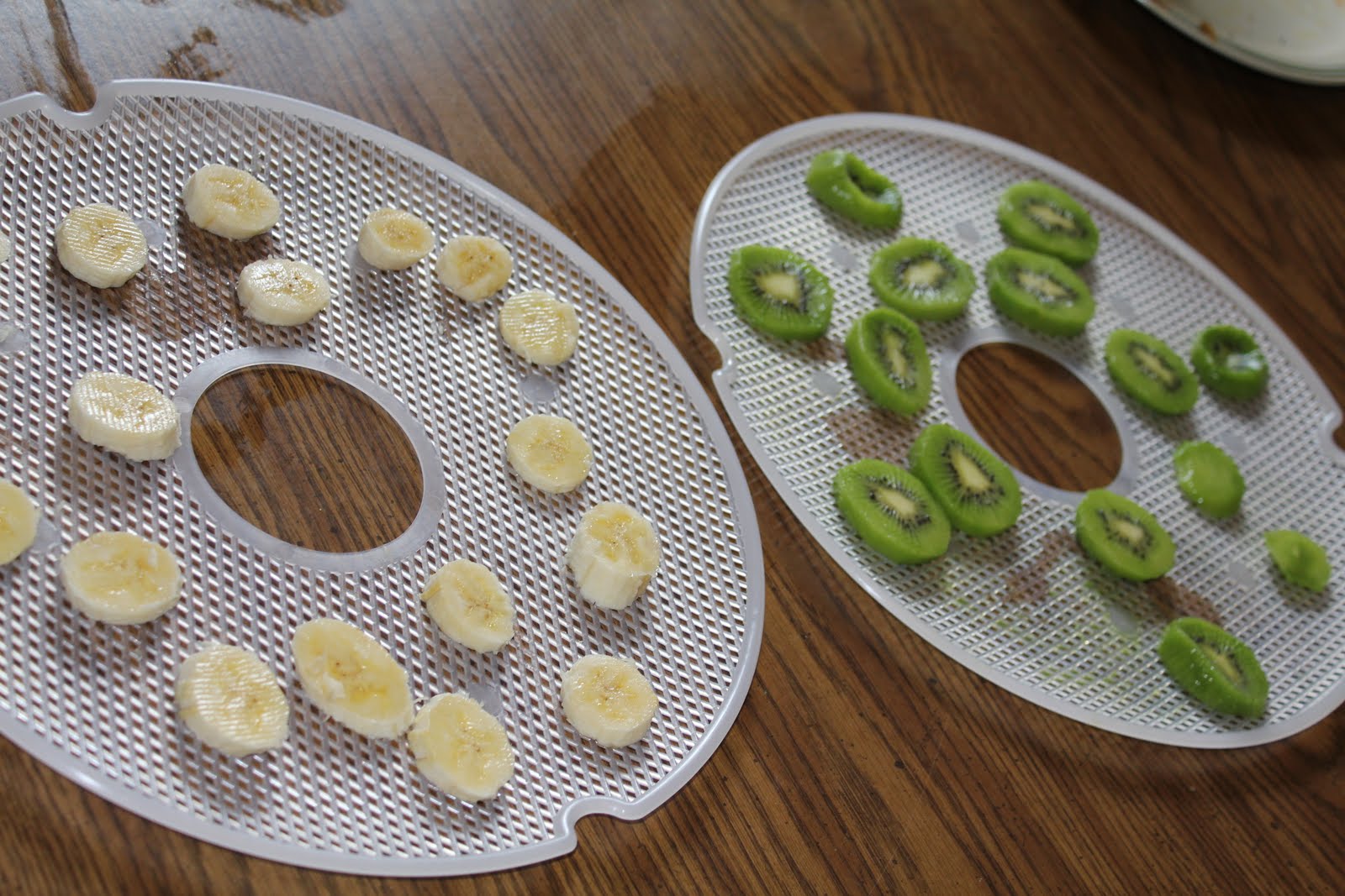 One way I am getting more fruits and veggies is by using the Food Dehydrator my hubby got me for Christmas. I love it! I had a banana and some kiwis that I knew weren’t going to be eaten over the weekend so I cut them up and tossed them in the dehydrator. Voola! Snacks for the kiddos on the go next week and no food waste. Win-win.
