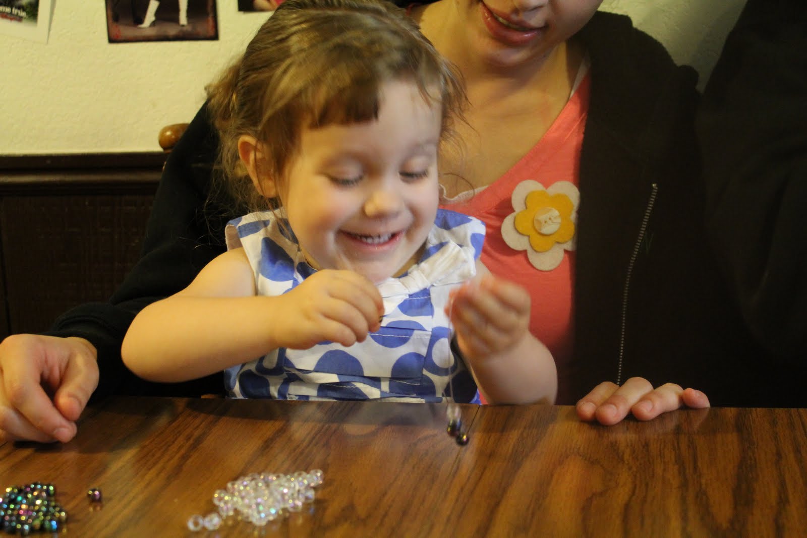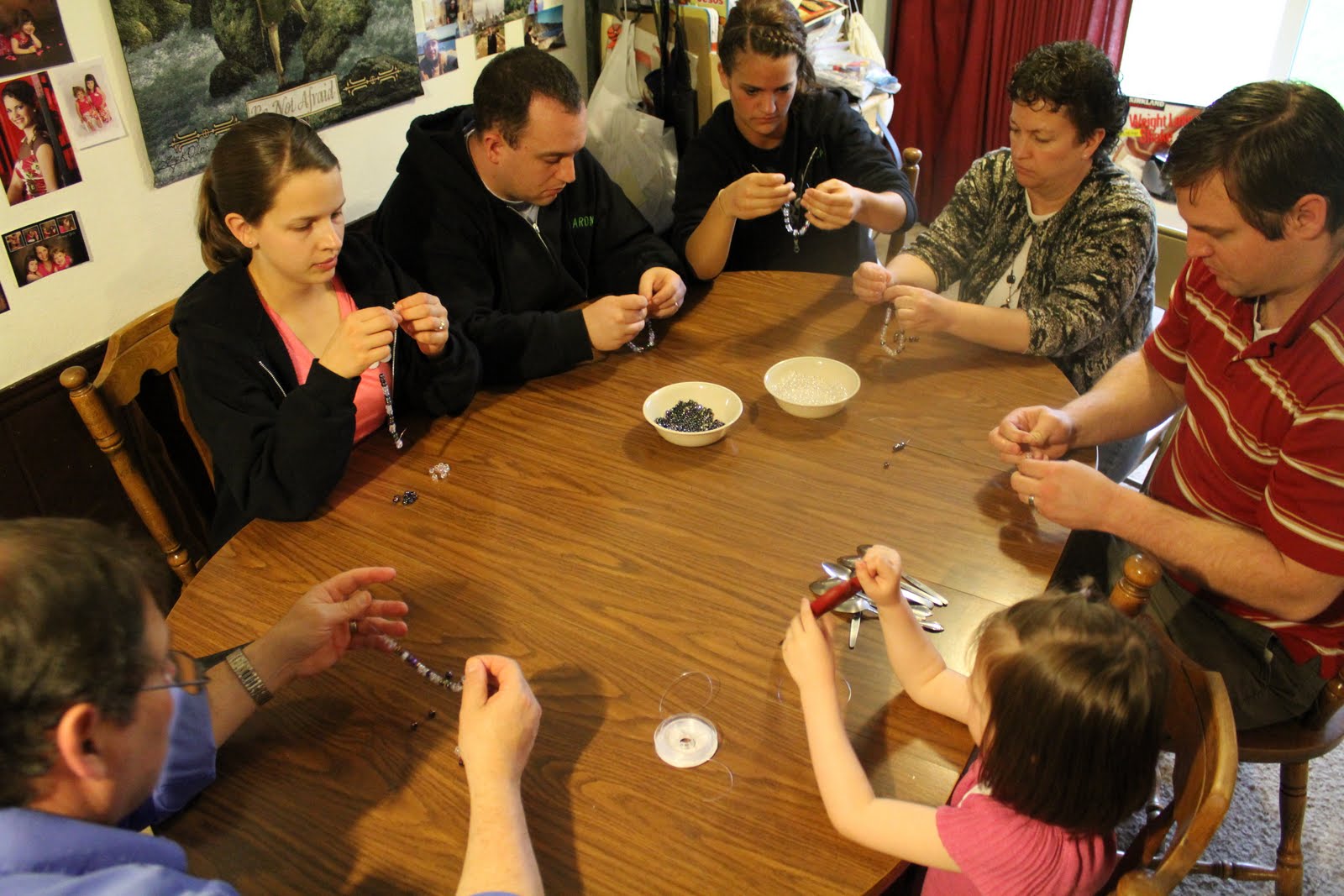 This project was so incredibly fast and easy! Just a quick trip to the store for the beads my little girl picked out and then half an hour out of our family get together on Mother’s Day. Many hands make light work, right? I love that this is a project that everyone from the preschoolers to the grandparents can do and enjoy. Even the men got involved! In fact, they were the best at tying the knots onto the beads so the bracelets didn’t fall apart. It was a good feeling to be serving together as a family – definitely something we want to do more of.