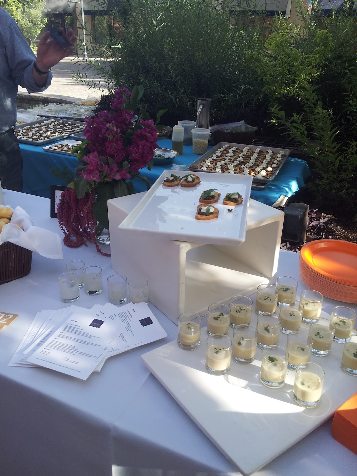 The event was catered by People Water, Pizzeria 712, and Cafe Rio. The chocolate strawberries and little chocolate cookies were divine (anyone know what those were called and what the filling was inside – SO GOOD!) Loved the little potato soup shot glasses from Pizzeria 712.