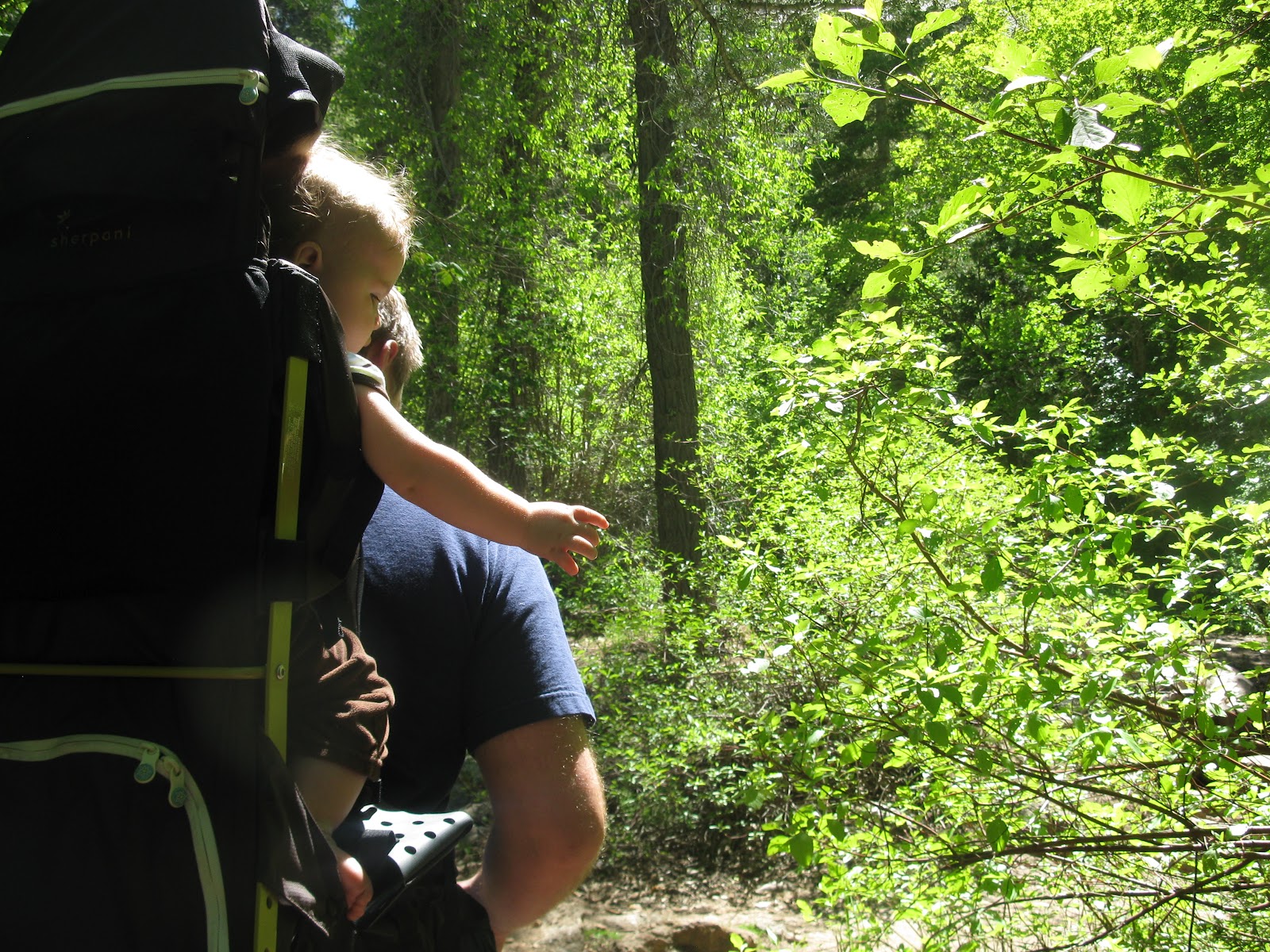 Kyler was fascinated by the trees and leaves. (Bytheway – we love our baby hiking backpack. Easy to slip our little guy in and tons of storage for all our snacks, water bottles, and even changes of clothes for the children).