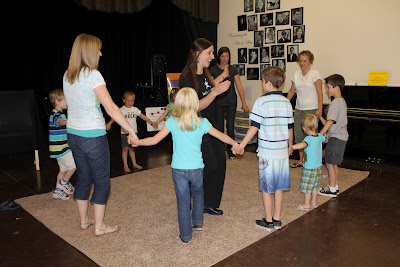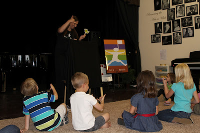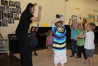 For this activity, the children were learning ascending and descending pitches through full body movement. They also placed their own notes on the staff determining if Mrs. Karmel would sing high or low. Mrs. Karmel’s high notes were pretty impressive and the kiddos gave her lots of opportunity to practice them.