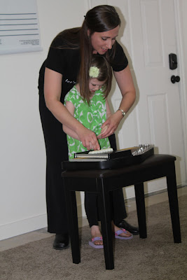 Lily thought it was so cool that she was able to play the primary chord song with Mrs. Karmel. Love how hands on these classes are.
