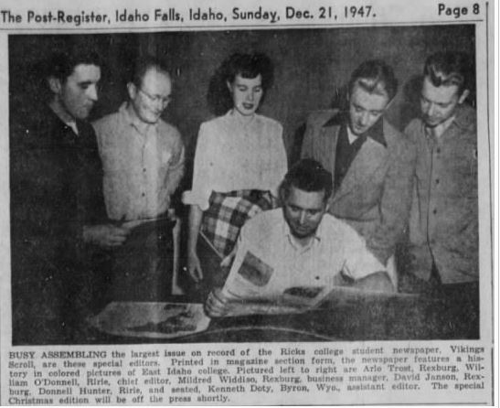 Another fun discovery was that William’s sister Caroline also attended Ricks Academy. Even better, she was a reporter for the school newspaper! This is so fun to me as the student newspaper is what brought me to Ricks College! Again, digging through the online digital archives, I was able to find this yearbook photo of Caroline! The very first photo of her that I had seen – what a treat to share it and upload it to Family Search for others. That dark curly hair definitely was passed down through the generations!