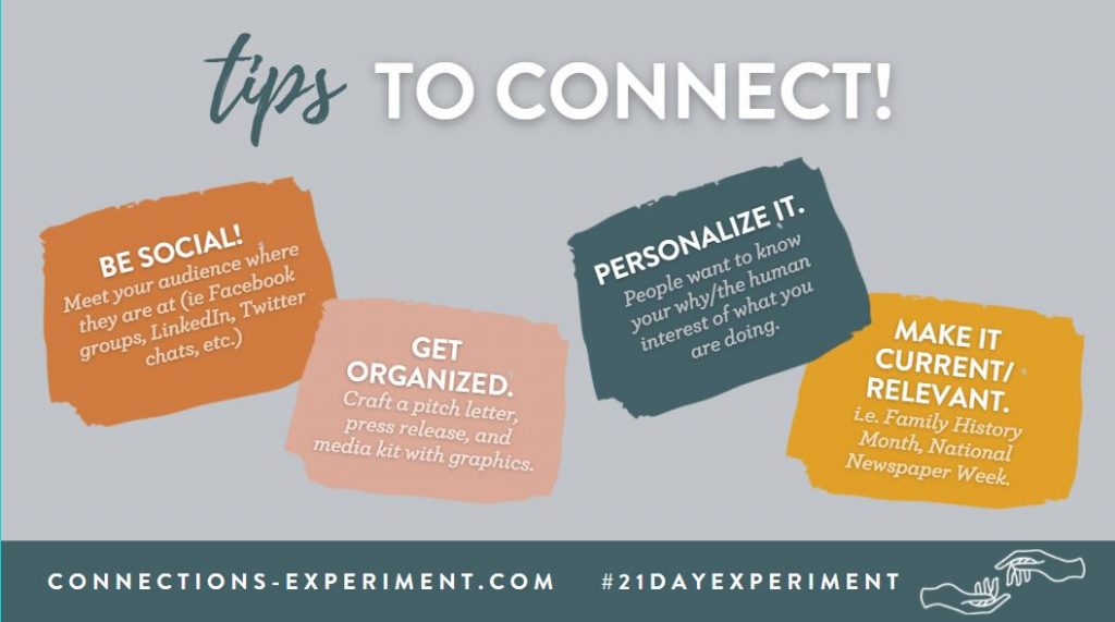 Hitch your wagon to something already popular well-established/popular. For us, it was family history month! We choose to host our second experiment in October precisely because it was family history month. This made our experiment newsworthy again because it was a way to celebrate something that was already established.